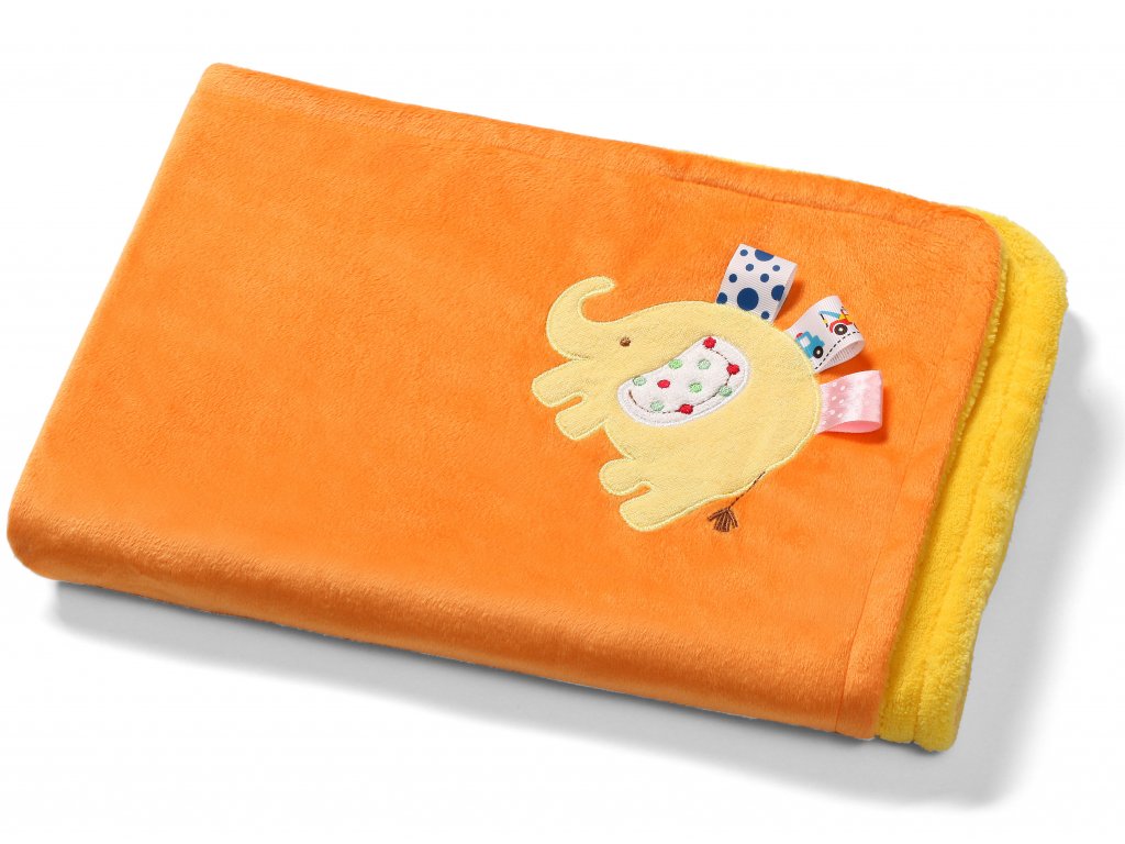 Baby Ono Dětská deka oboustranná s 3D prvky 75x100 cm oranžová Slon