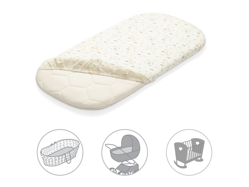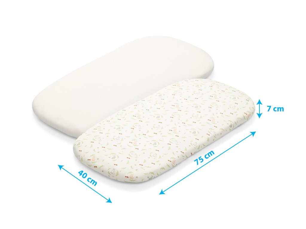 Prostěradlo je ideální pro kočárky, kolébky, košíky a matrace do rozměru 40x75x7cm