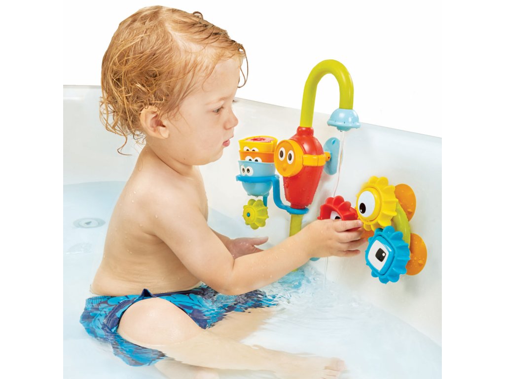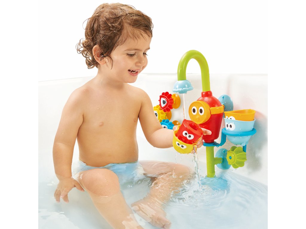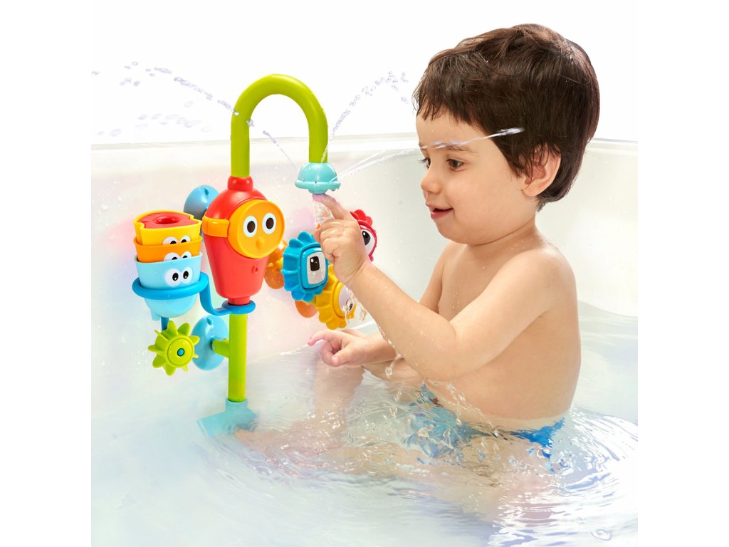 Kohoutek se připevňuje pomocí přísavek ke stěně vany a nabízí mnoho způsobů hraní s vodou. Obsahuje bateriové čerpadlo, které snadno čerpá vodu z vany a vytváří tak nekonečný proud vody. A to bez zbytečného plýtvání nebo rizika popálení horkou vodou z běžného vodovodního kohoutku.