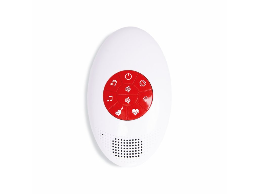 - Přehrává 3 ukolébavky a 3 zvuky (tlukot srdce, bílý šum, zvuky přírody).