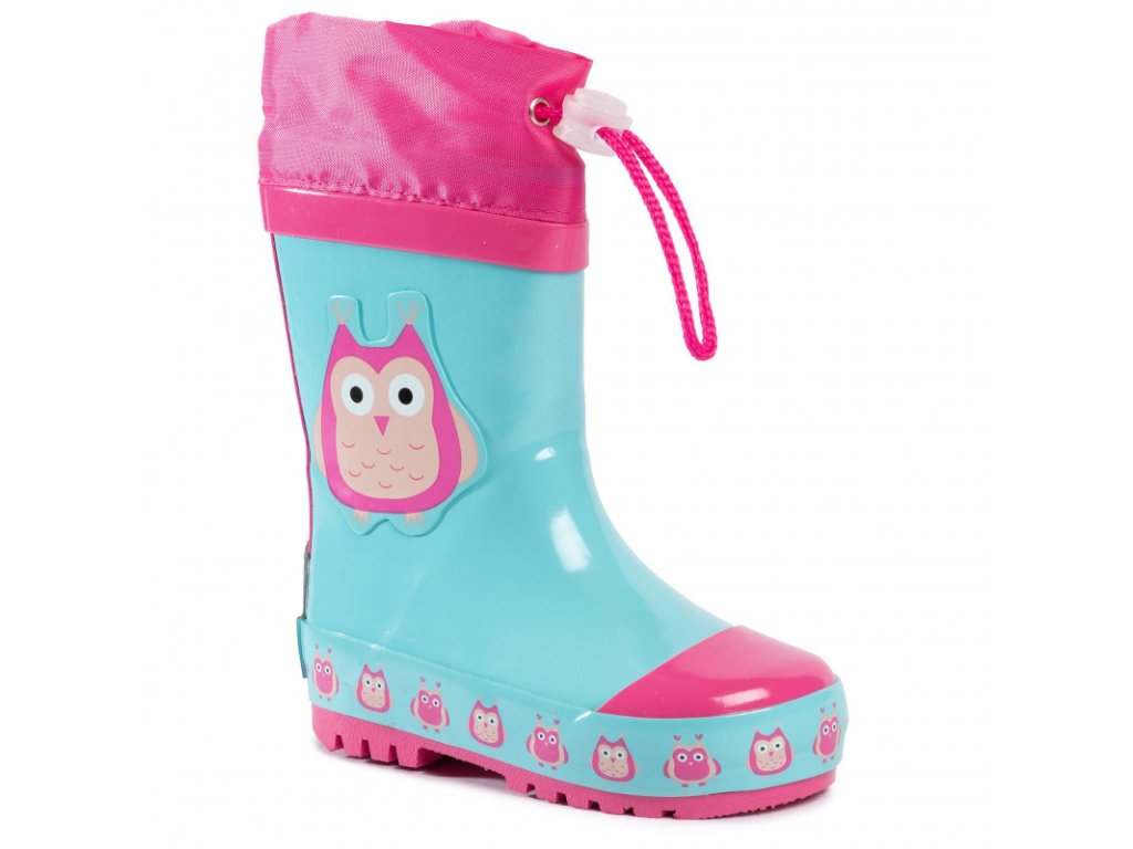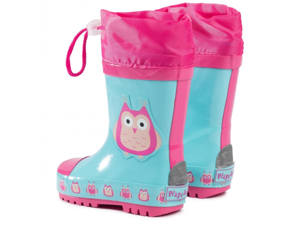 Playshoes Gumové holínky tyrkysové s růžovou sovičkou