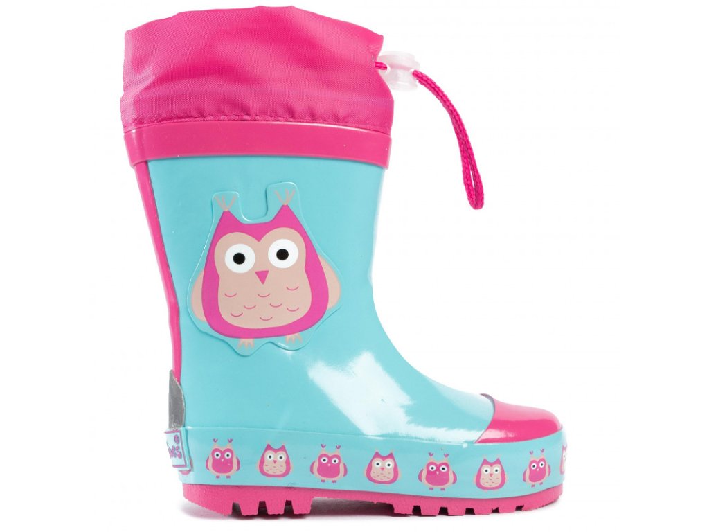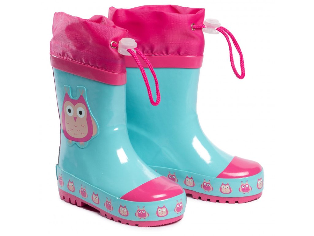Playshoes gumové holínky se stahovací šnůrkou - tyrkysové se sovičkou