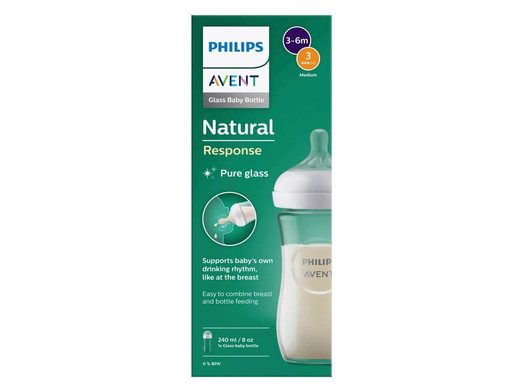 Avent skleněná láhev Natural Response 240ml, 1ks se savičkou č. 3 se středním průtokem 3-6m