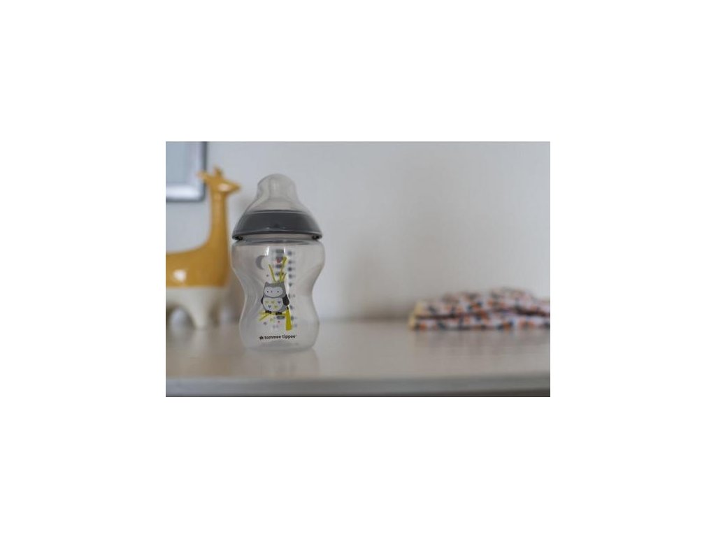 Tommee Tippee sada 6x antikoliková kojenecká láhev C2N, 260ml s obrázkem sovičky a šedým víčkem