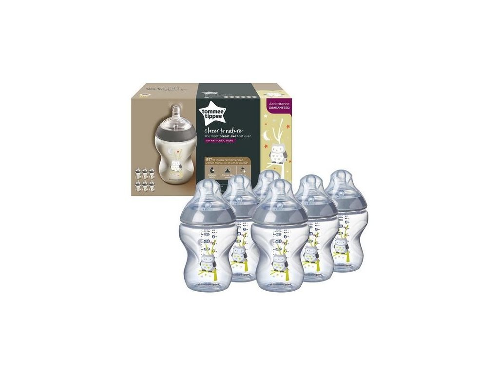 Tommee Tippee sada lahviček C2N 6ks 260ml 0m+ s obrázkem - sovičky