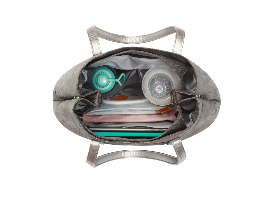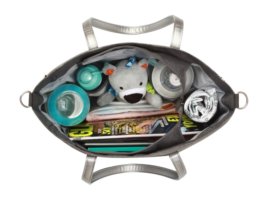 Taška "SO DYNAMIC" je módní městská taška na věci pro maminku a dítě. Je vybavena postranními nastavitelnými popruhy, které umožňují připevnit tašku na libovolný typ kočárku. Díky promyšlené funkčnosti se výborně hodí na procházky i delší výlety. Taška obsahuje 11 kapes, včetně rychle přístupných kapes na láhve, pleny, mobil a doklady. Hlavní úložný prostor a 3 vnější kapsy se zapínají na zip. Dva boční magnetické cvočky umožňují snížit objem tašky, když je méně naplněná. Součástí tašky je praktická přebalovací podložka.